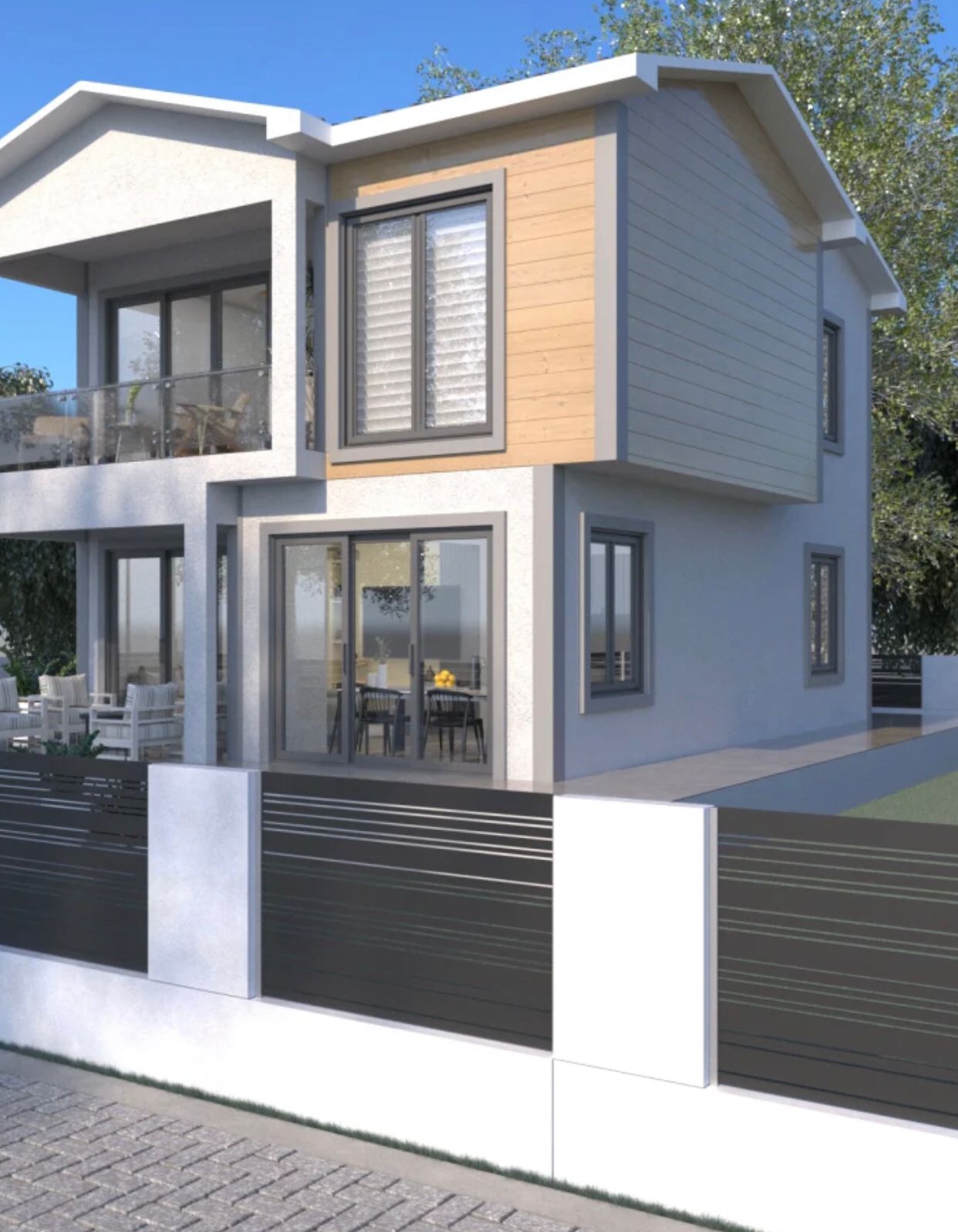 Dış cephe uygulaması: Astar, Kalekim, derz bandı, dekoratif mineral sıva, astar ve Jotun marka boya