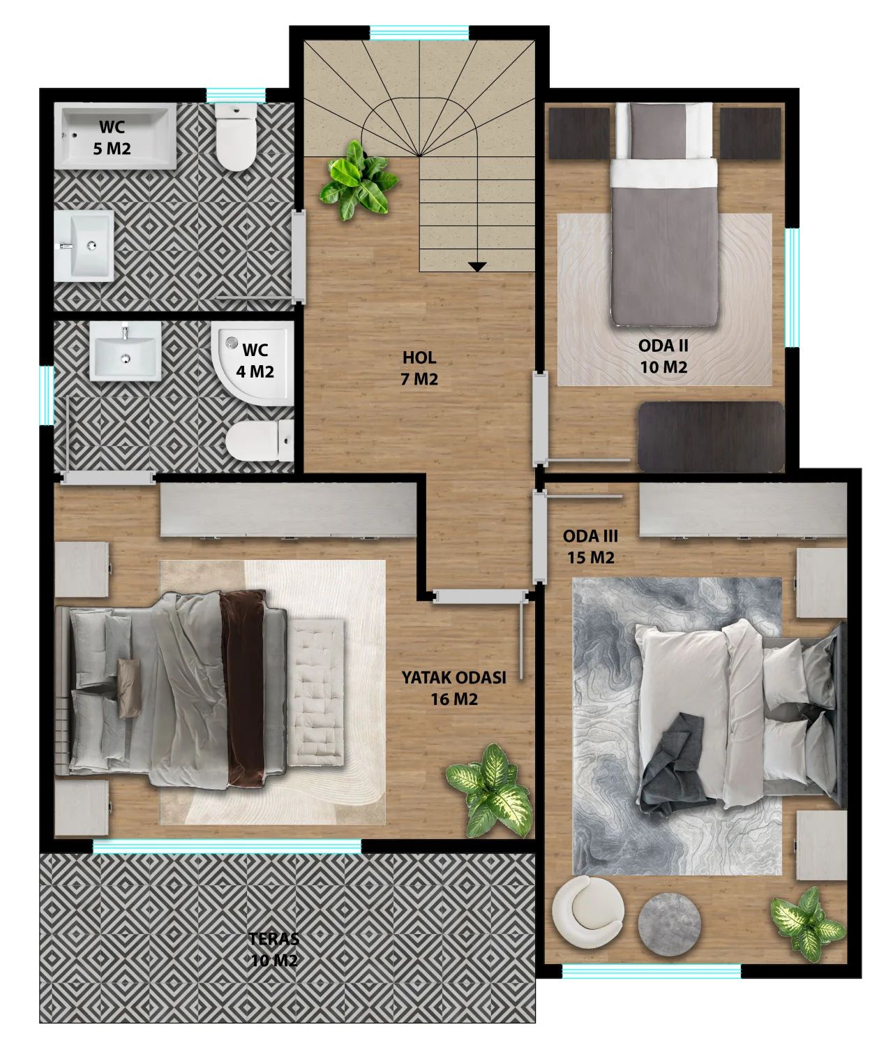 İç kaplama: Çift kat alçıpan